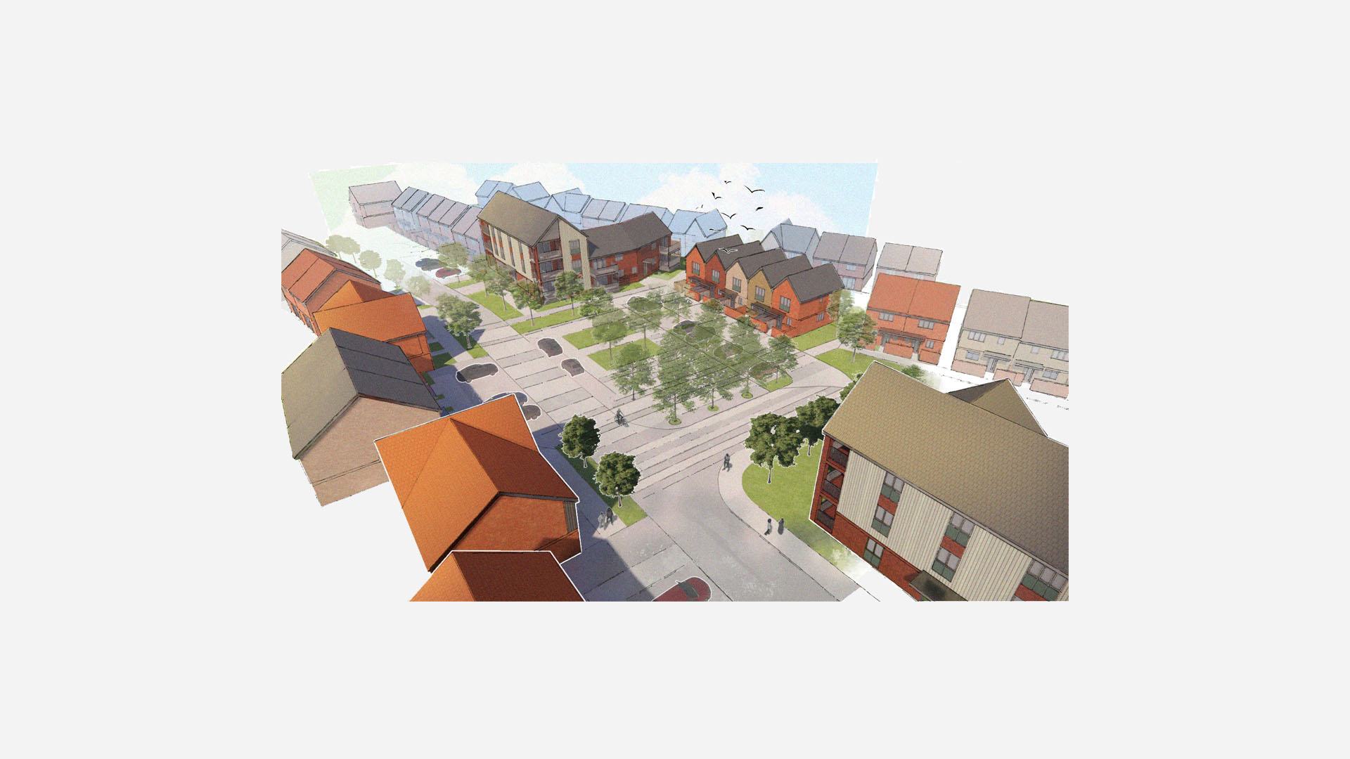 Based on the Outline Approved parameters, the development proposes a mix of houses and apartments set within a high-quality landscaped setting.